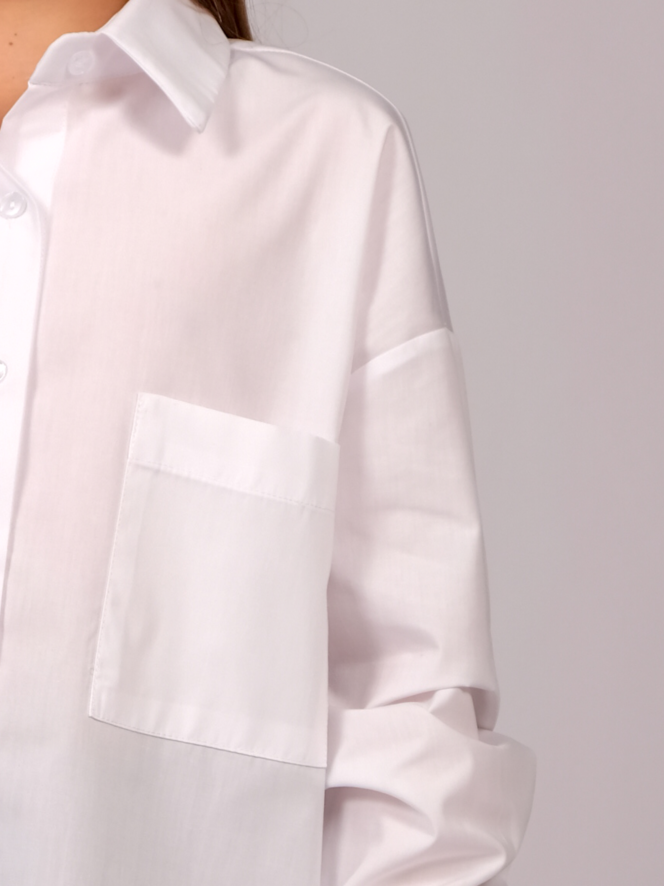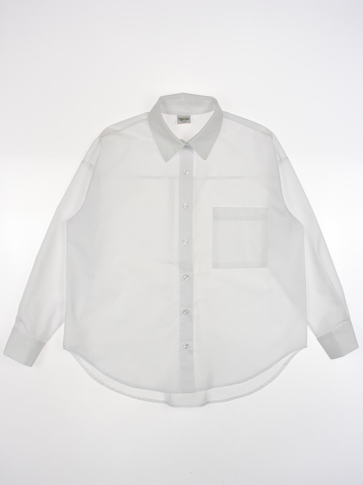 Школьная рубашка для девочки оптом. Модель объемная, прямого кроя, застегивается на пуговицы, рукава с манжетами.