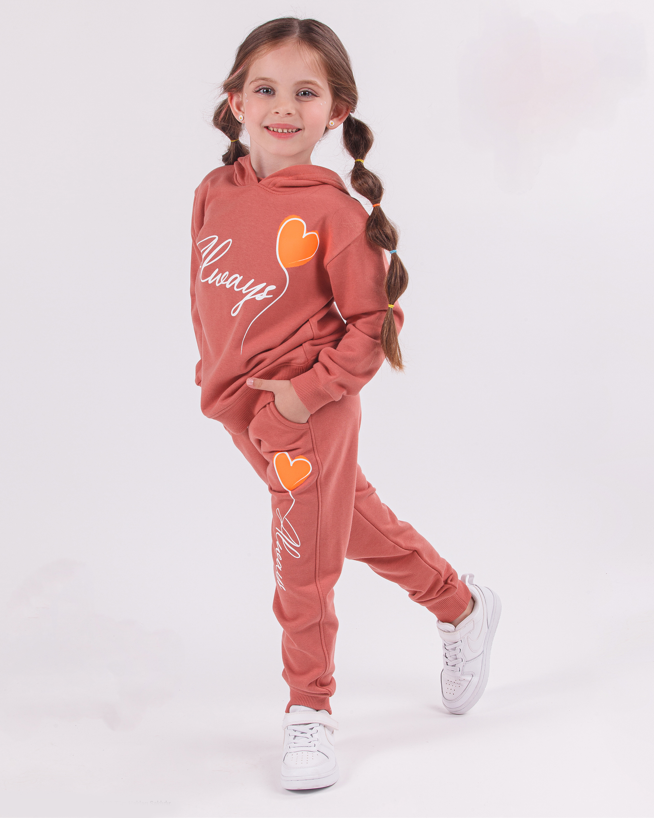 Базовый однотонный спортивный костюм Dmb оптом для девочки из футера без начеса . Комплект одежды состоит из худи и брюк-джоггеров. Такой костюм станет отличным дополнением гардероба любой девочки как для повседневной носки, так и для занятий спортом, бегом, для физкультуры в школе, а также будет уютным, мягким домашним нарядом в прохладное время года!