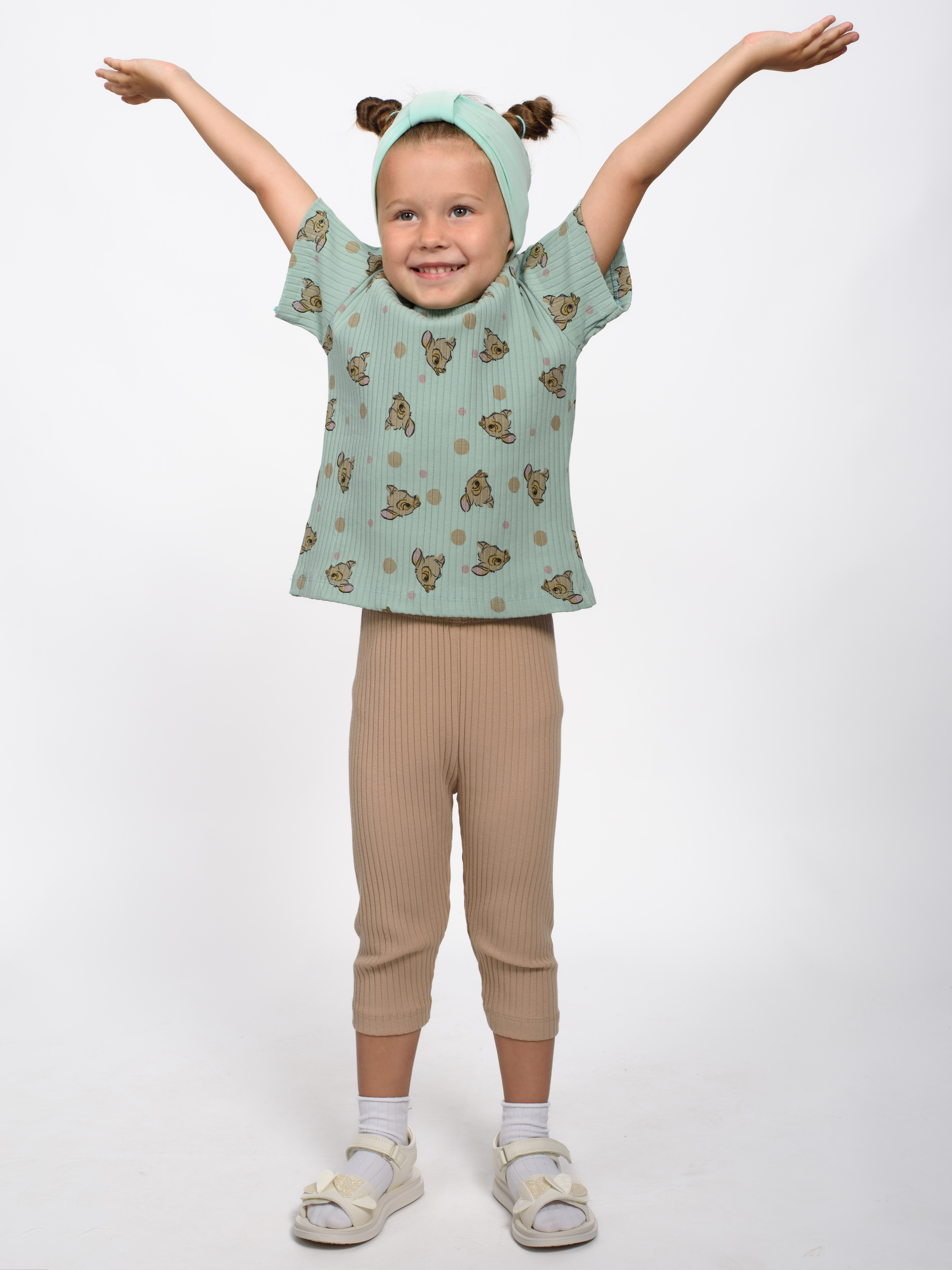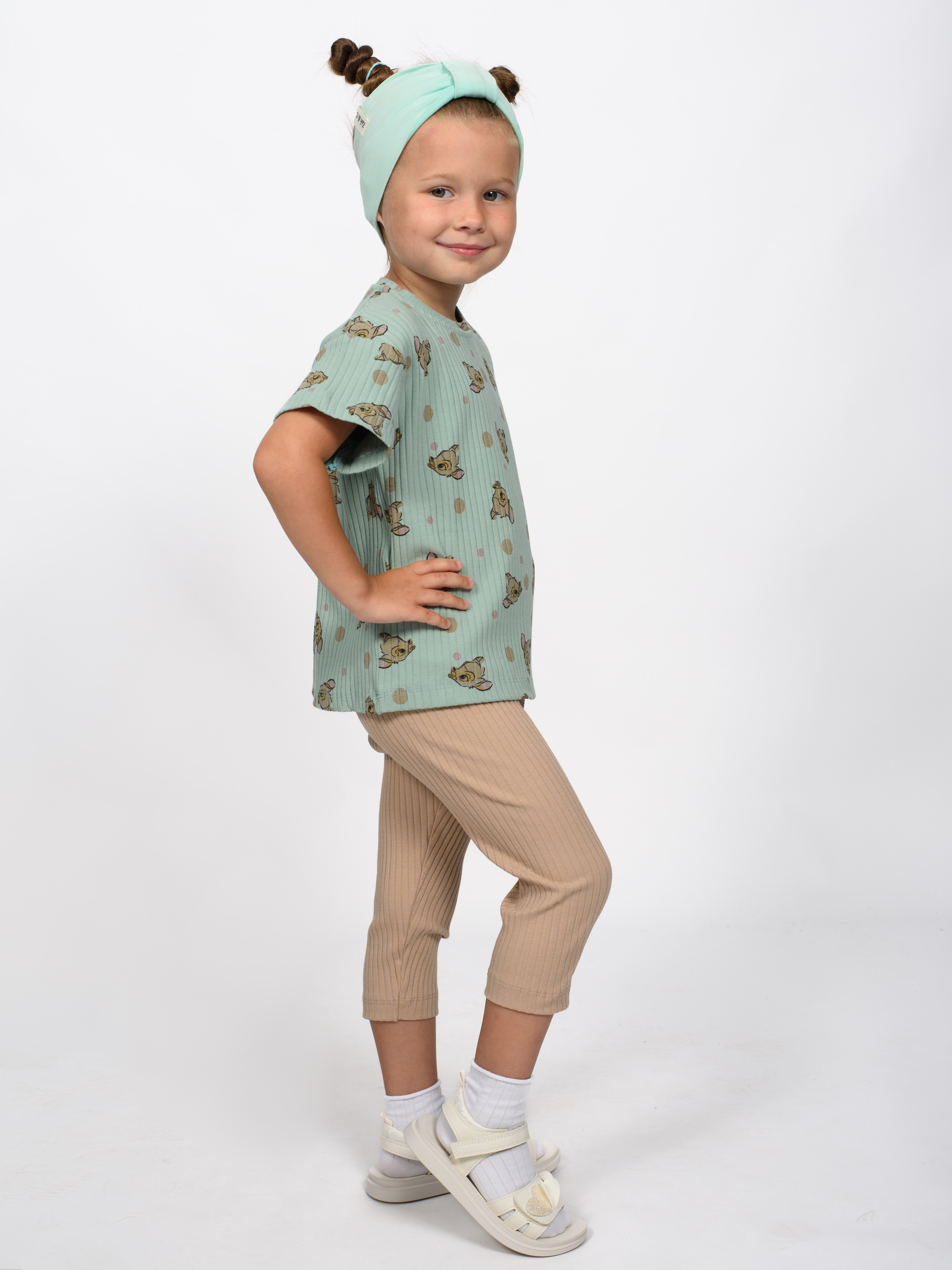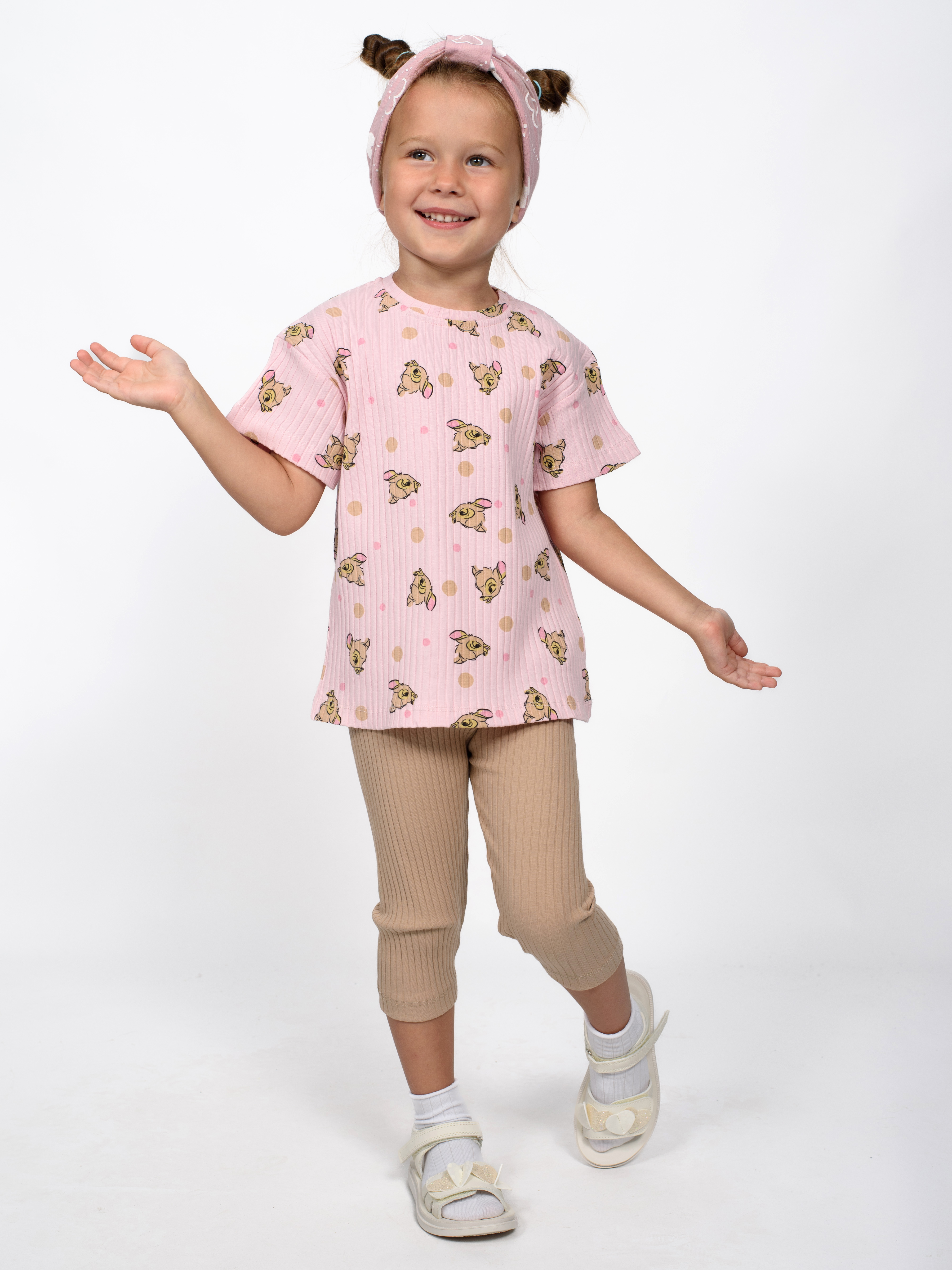 Практичный костюм TMK для девочки оптом состоит из футболки и лосин. Горловина футболки обработана эластичной бейкой. Лосины в поясе на резинке.  Костюм изготовлен из хлопкового полотна лапша - нежного и мягкого, гипоаллергенного и легкого в уходе. Модель прекрасно подойдет для повседневной носки на улице или дома, для детского сада, а так же для активного отдыха и занятий спортом.