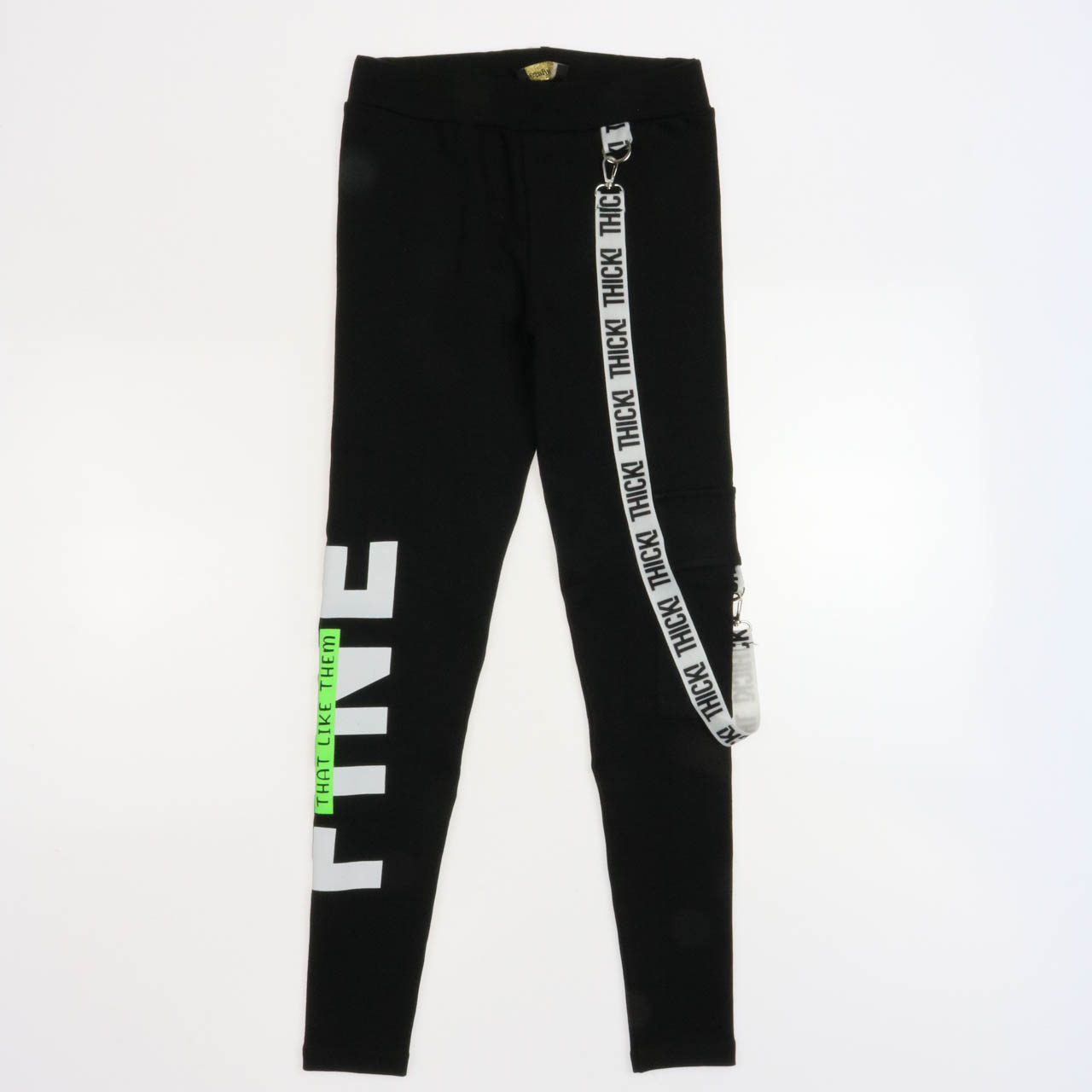 Плотные лосины  Yesmina оптом. Лосины украшены  печатным принтом, съемным ремнем, сбоку пришит накладной карман.