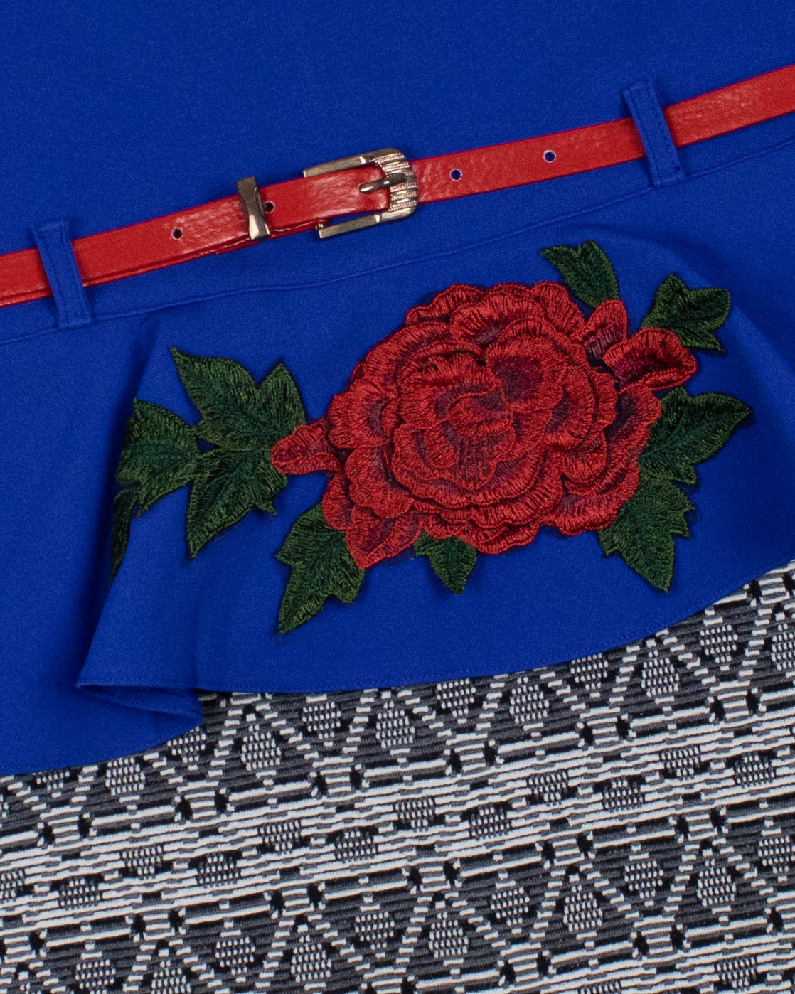 Детское платье Diren оптом - это прекрасный выбор для маленьких модниц. Приталенный крой создает эффектное сочетание блузки и юбки, придавая платью особый шарм. Оно идеально подходит для тех, кто хочет выглядеть стильно и ухоженно. Верх платья представляет собой блузку с элегантной баской, которая подчеркивает талию и создает изящные линии фигуры. Яркие элементы-аппликации добавляют платью игривости и неповторимости. Красный ремень является стильным акцентом, подчеркивающим талию и дополняющим образ.Рукава платья имеют длину 3/4, что делает его универсальным в ношении. Они придают платью легкость и женственность, а также обеспечивают комфорт даже в теплое время года. Застежка-молния, расположенная на спинке, обеспечивает удобство и легкость при одевании и снимании платья. Это важно для детей, которые часто меняют образы и нуждаются в быстрой смене одежды.