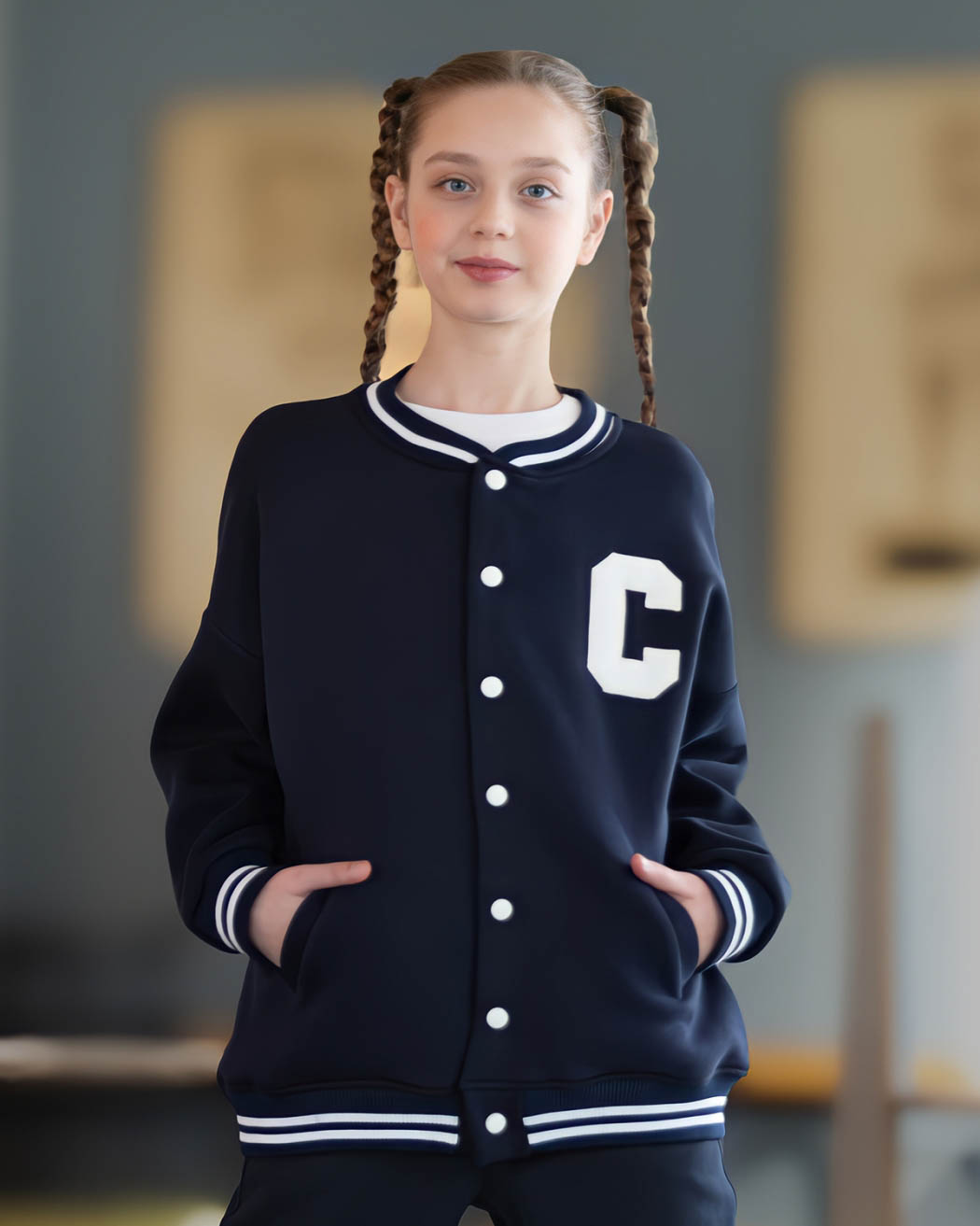Трикотажный  бомбер dmb с начесом оптом. Бомбер школьный без лишних деталей отлично впишется в повседневный гардероб. Модель свободная, без капюшона, на манжетах.