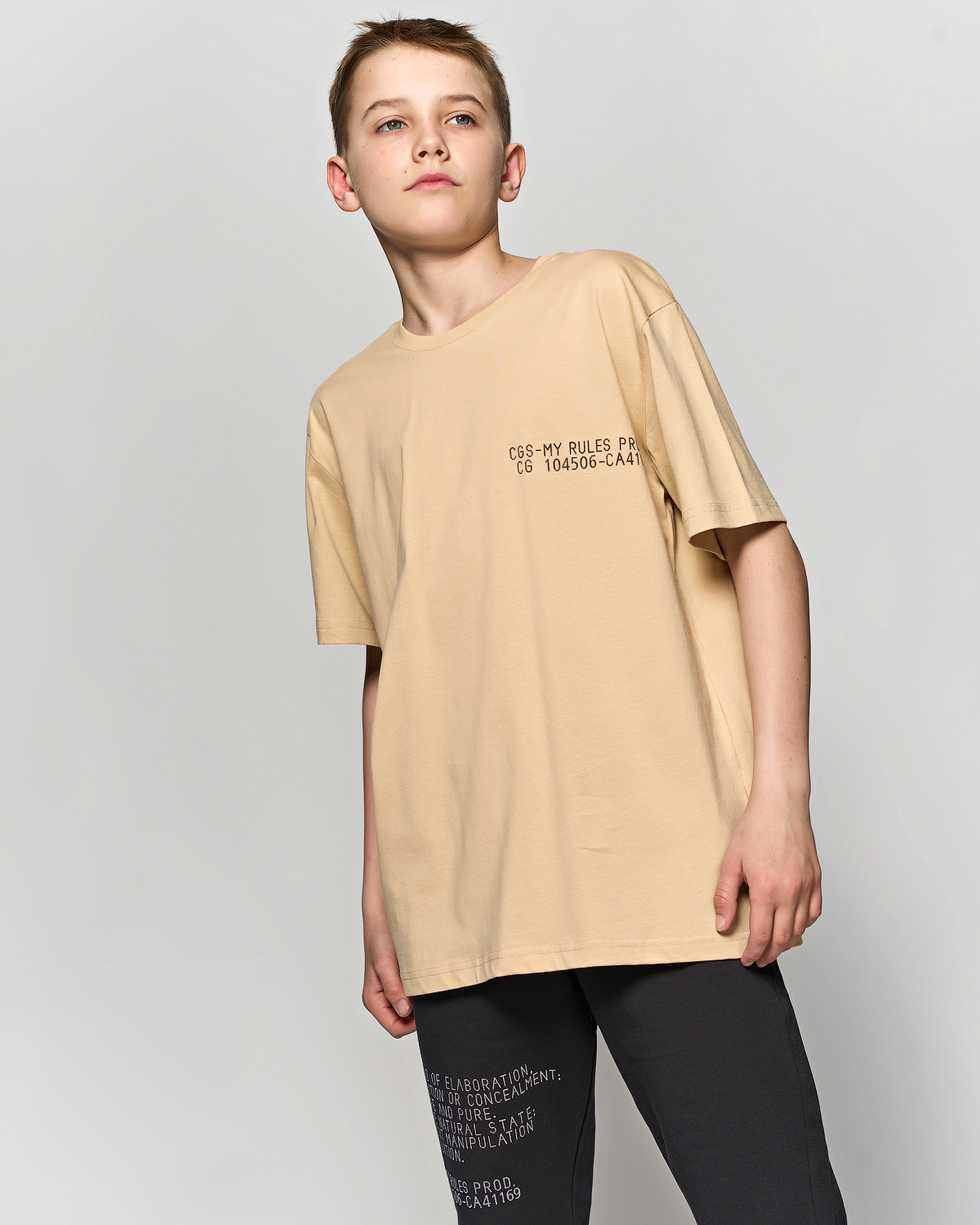 Футболка для мальчика Cegisa прямого кроя оптом. Спереди и сзади расположен графичный принт.