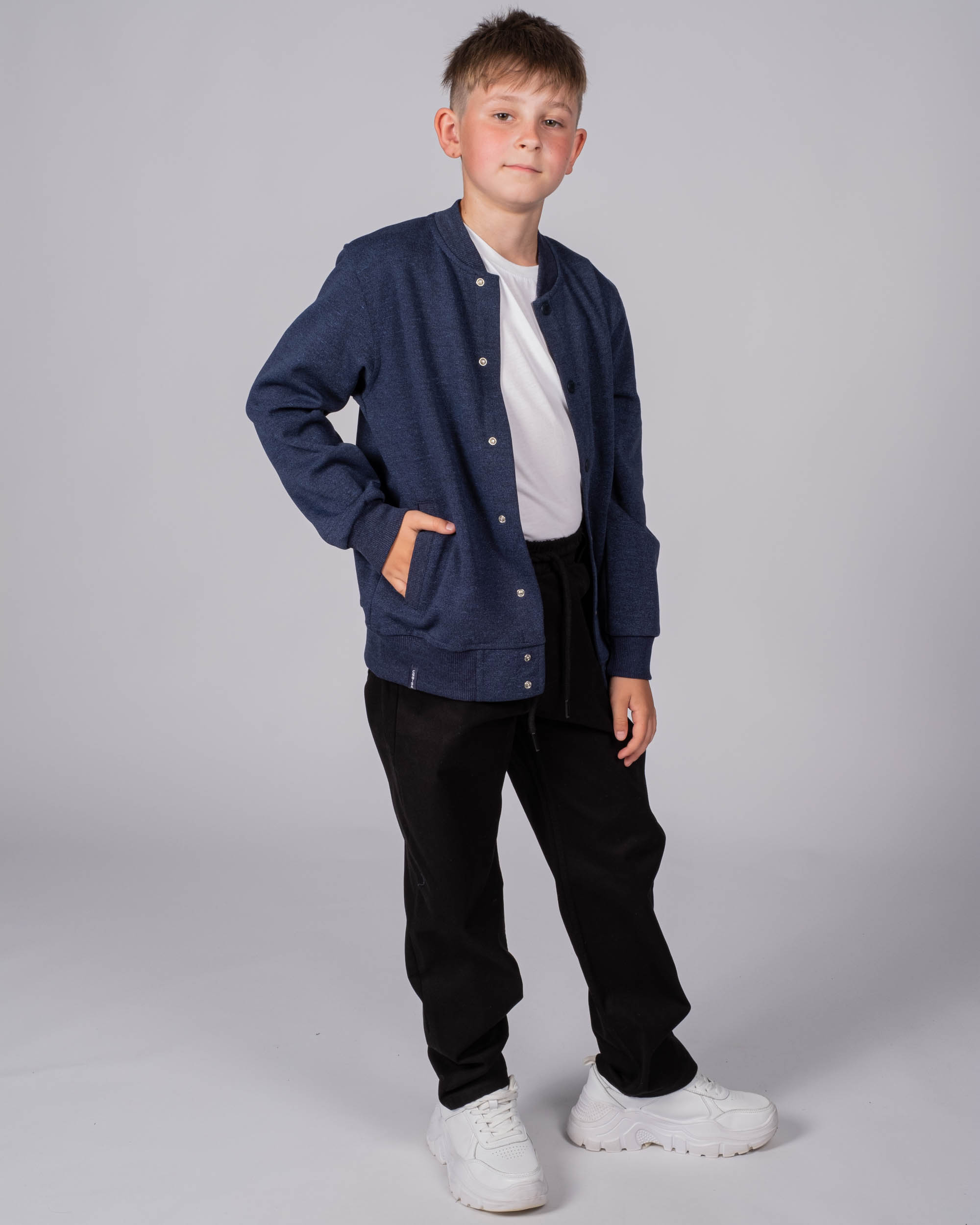 Трикотажный бомбер Cegisa для мальчика оптом. Выполнен из смесовой ткани, в составе которой натуральный хлопок с добавлением полиэстера. Воротник стойка. Низ изделия и рукава на трикотажном манжете. Вместительные карманы и разъемная застежка - кнопки. Хорошо сохраняет цвет и форму при длительной носке и после многократных стирок. Прекрасно будет смотреться как школьная форма.