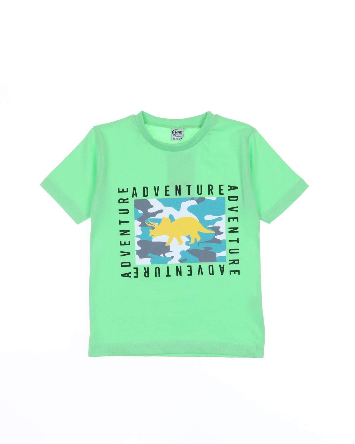 Костюм для мальчика, состоит из футболки и шорт. Модель выполнена из хлопкового полотна и оформлена печатным принтом. Футболка прямого кроя, с округлым вырезом горловины. Ткань кулирная гладь.