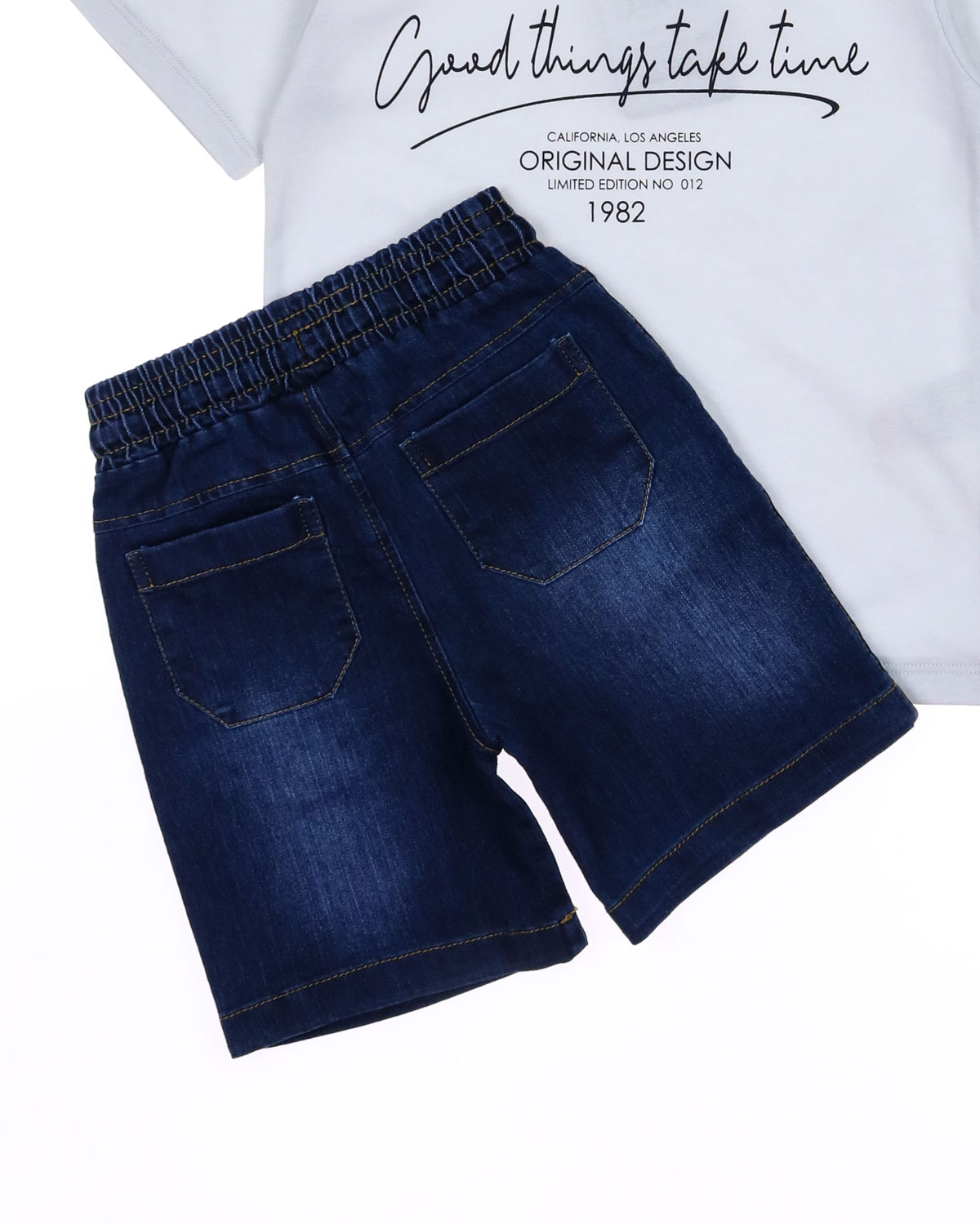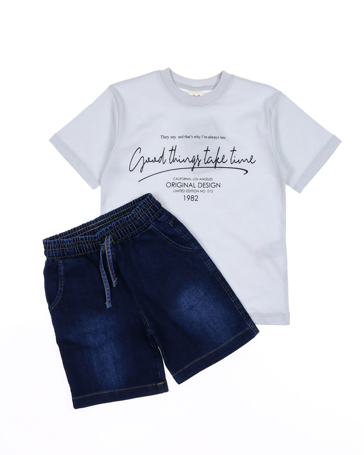 Летний костюм для мальчика dmb оптом. Футболка прямого кроя с короткими рукавами, на груди накладной карман. Бриджи из облегченной джинсы без эластана с боковыми карманами. Пояс на резинке с функциональным шнурком позволяет ругулировать объем на талии. Большой выбор костюмов для мальчиков по низким ценам в интернет-магазине Tamriko оптом.