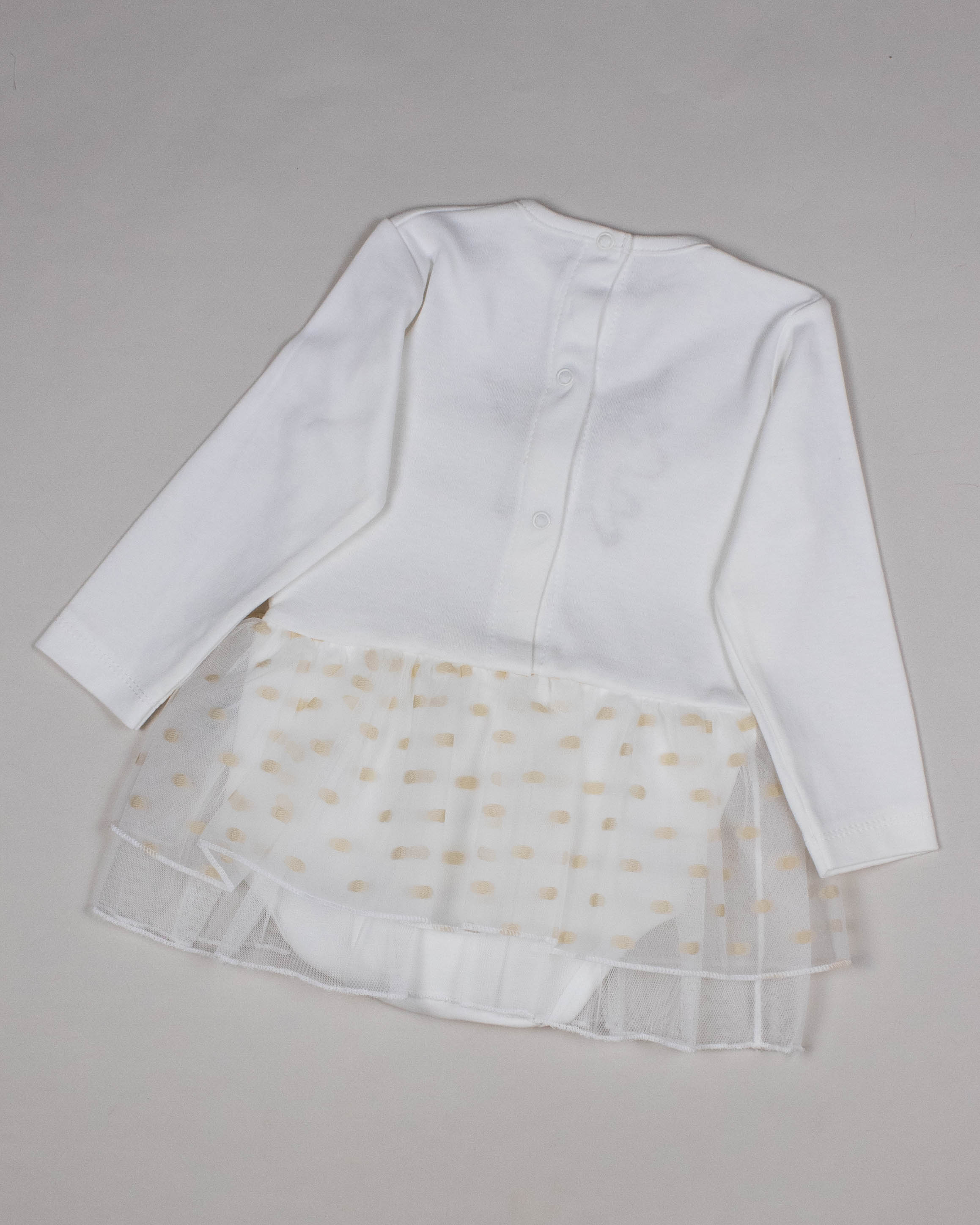 Платье-боди PUAN с длинными рукавами для малышей очень комфортно в использовании, не стесняет движений. Изготовлено из 100% хлопка. Застежка на спинке и снизу позволит в считанные секунды переодеть малышку.