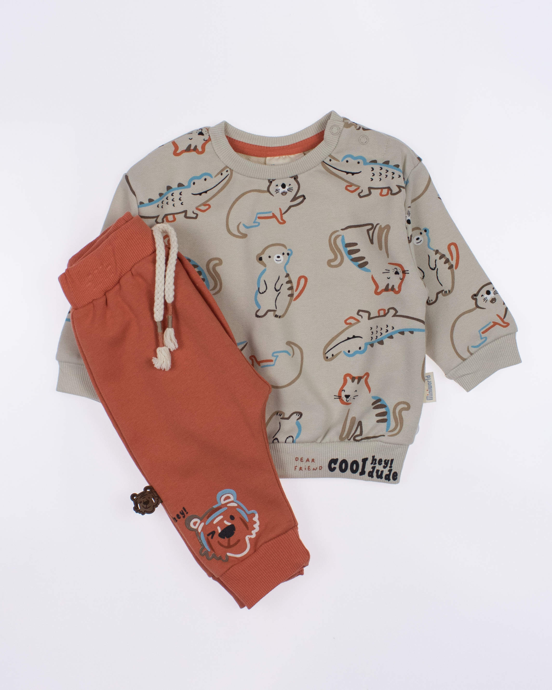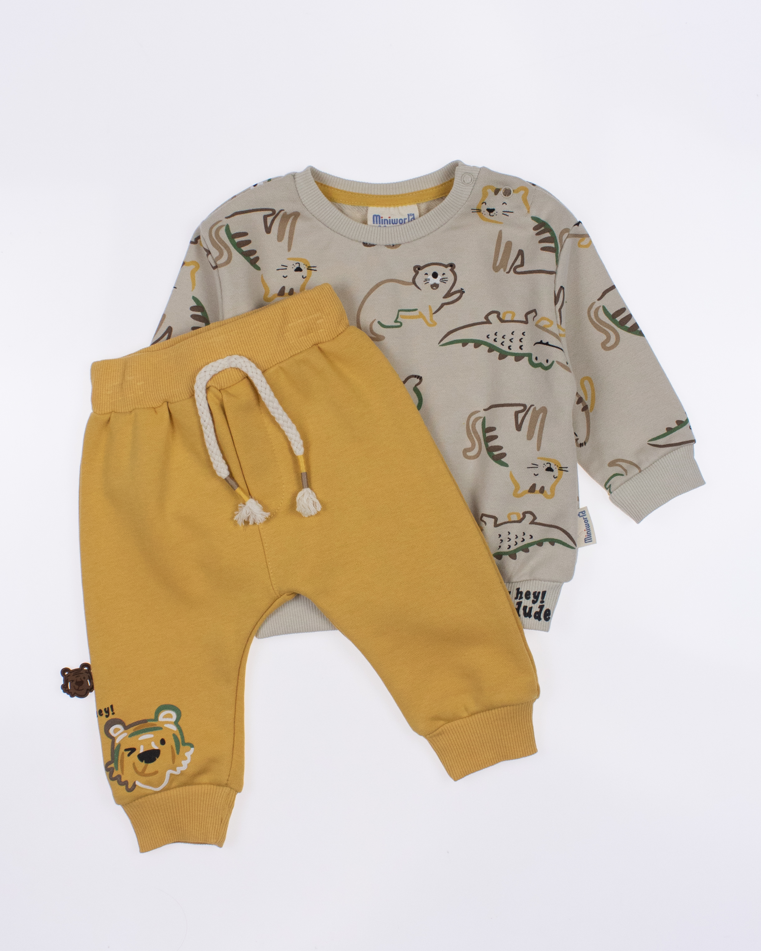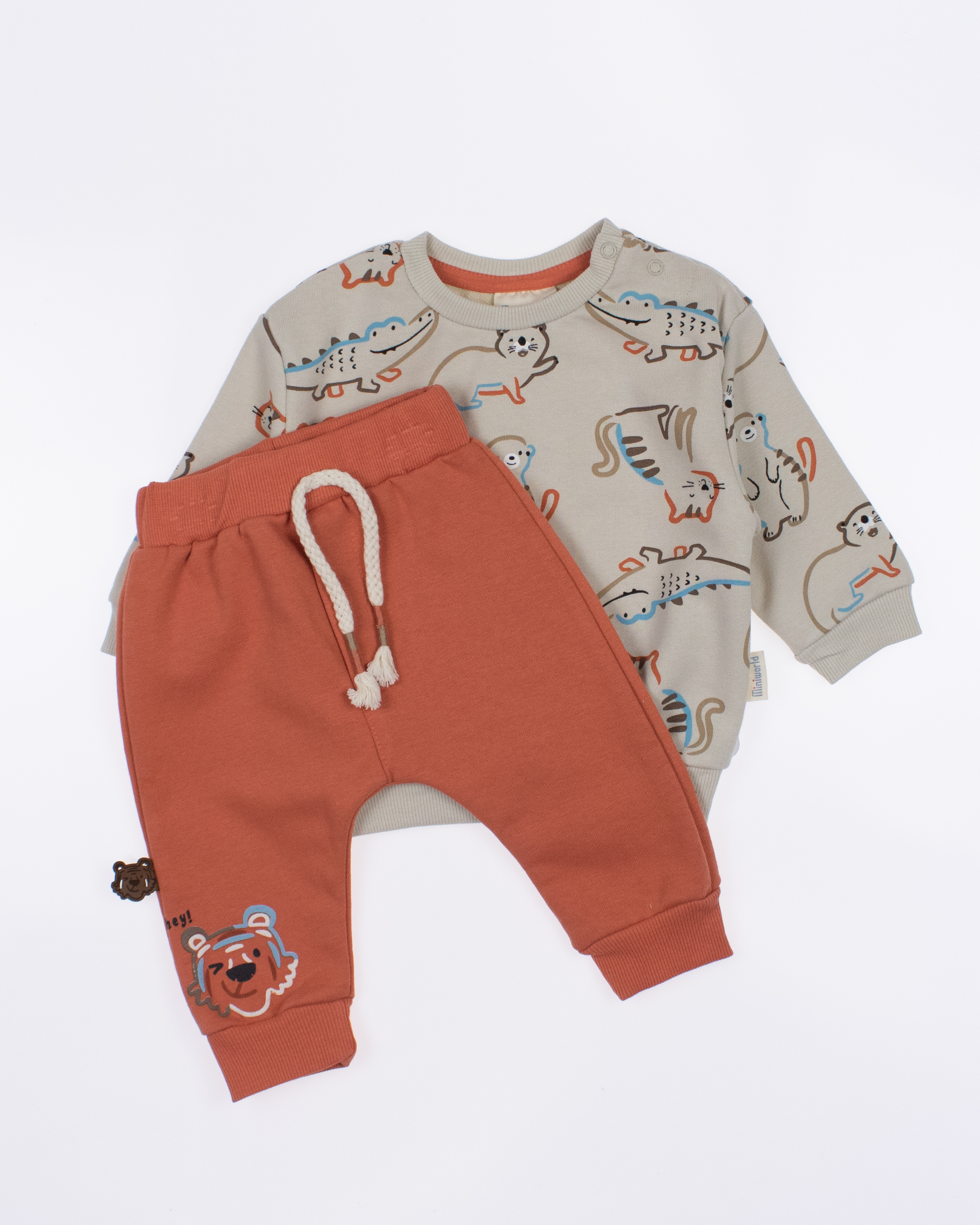 Мы предлагаем оптовые продажи детской одежды производства Турция. Хлопковый костюм MINIWORLD выполнен из 100% хлопка, что гарантирует комфорт и безопасность для самых маленьких детей. Свитшот имеет удобную застежку-кнопки на плече, что облегчит процесс надевания и снятия одежды. Штанишки с мягкими манжетами на эластичном поясе идеально подходят для ношения с подгузником, обеспечивая свободу движений и комфорт. Детский милый принт на костюме поможет развить фантазию и воображение ребенка, делая его образ ярким и запоминающимся. Костюм MINIWORLD - отличный выбор для маленьких модников и их заботливых родителей. Не упустите возможность приобрести этот уникальный товар оптом по выгодной цене!