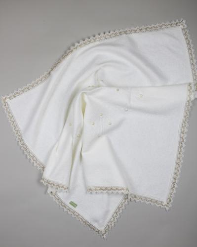 Детский плед из нежного, тканого, набивного полотна - приятный подарок на крещение ребёнка. Красивый и уютный, он будет хорош и на выписку ребёнка. Плед связан на оборудовании высочайшего качества из мягкой пряжи прослужит очень долго. Размер пледа 100см*90см позволит легко укутать малыша или застелить детскую кровать.Согреет дома, на прогулке и в автомобиле.