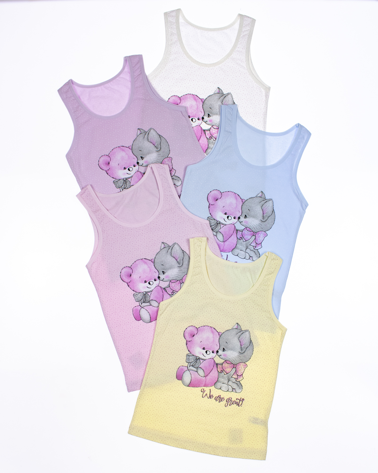 Однотонные майки Donella оптом для девочек, выполнены из нежной и шелковистой кулирки-это новый уровень комфорта! Майки для детей классического кроя подойдут на все случаи жизни: в путешествие и на дачу, для дома и на прогулку, для сна и активного отдыха. Детские майки для девочки - важнейший предмет одежды для дома, к выбору которой стоит относиться ответственно. Наш бельевой трикотаж не теряет форму после стирки, не лопаются резинки, не распускаются нитки на манжетах, рисунок не выцветает. Мы предлагаем майки для девочки только самого лучшего качества.