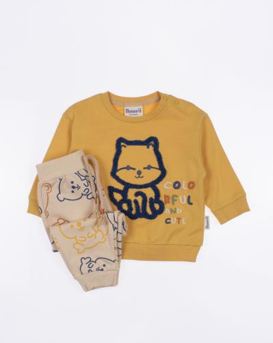 Мы предлагаем оптовые продажи детской одежды производства Турция. Хлопковый костюм MINIWORLD выполнен из хлопка с начесом, что гарантирует комфорт и безопасность для самых маленьких детей. Свитшот имеет удобную застежку-кнопки на плече, что облегчит процесс надевания и снятия одежды. Штанишки с мягкими манжетами на эластичном поясе идеально подходят для ношения с подгузником, обеспечивая свободу движений и комфорт. Детский милый принт на костюме поможет развить фантазию и воображение ребенка, делая его образ ярким и запоминающимся. Костюм MINIWORLD - отличный выбор для маленьких модников и их заботливых родителей. Не упустите возможность приобрести этот уникальный товар оптом по выгодной цене!