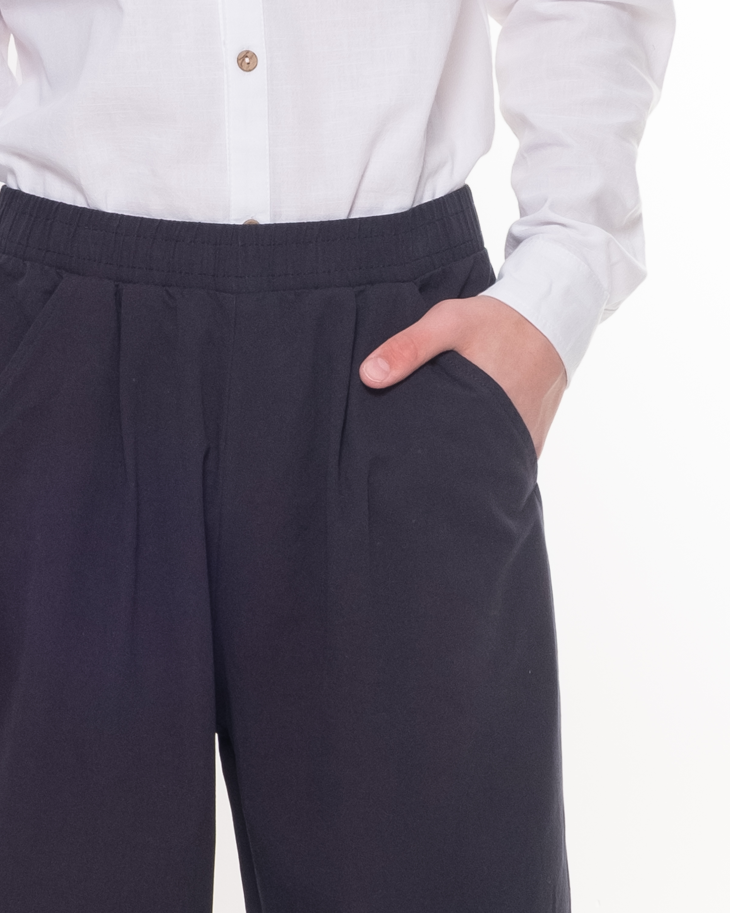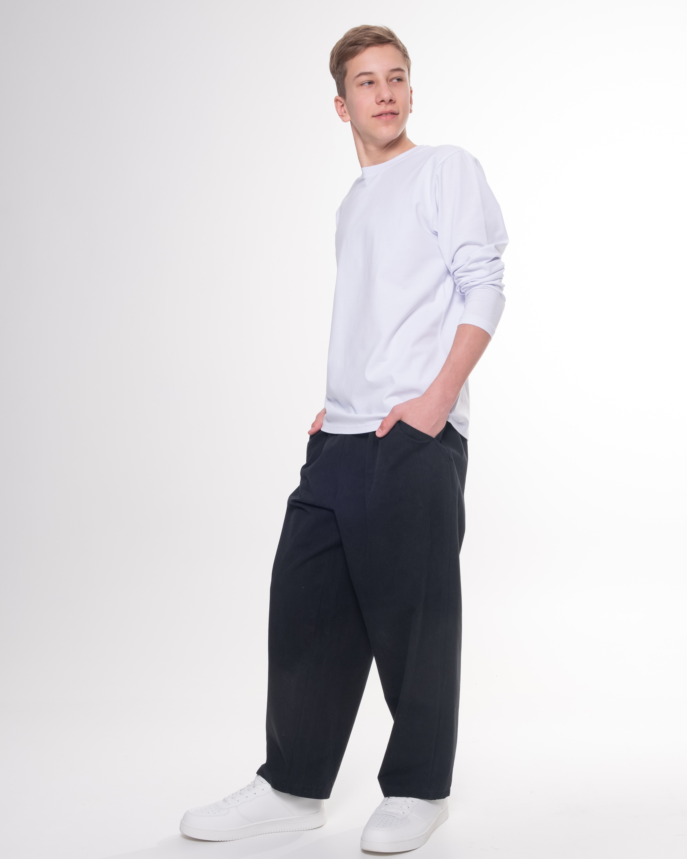 Умеренно свободные сверху, слегка сужены книзу, такая форма позволяет свободно двигаться во время активных игр и занятий спортом. Пояс на удобной резинке обеспечит дополнительную мягкость посадки и подойдет детям разных фигур.